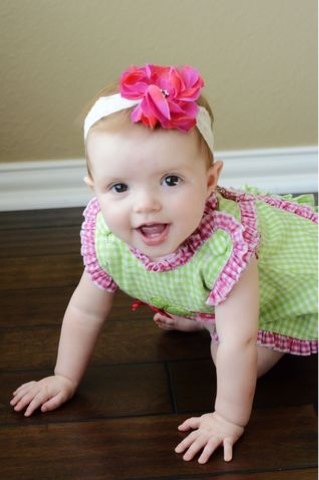 out how to do so many new things. We went to the doctor yesterday and she said that you are about to cut your top 4 teeth. We have known by the telltale signs of drooling and chewing on everything that you had some new teeth in your future. Here are some monthly measurements and new things you have been learning this month: